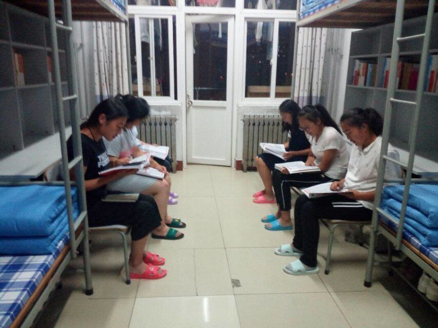 英寝哨声吹响后,新生们开始做好准备工作,他们整理好桌面,等待英寝的开始。随后,新生们开始学习并背诵今晚英寝内容,员工会学习部同学对部分宿舍的同学进行了抽查提问,督促同学们认真学习。同学们的诵读声响彻整个楼道,营造了良好的学习氛围。