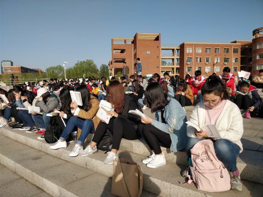 上午七时,同学们陆续来到聚英湖畔,纷纷拿出书本开始晨读。聚英湖畔响起朗朗书声,有的员工背诵古文,有的复习英语单词,还有一部分同学背诵现代汉语……同学们迎着微风、沐浴着晨光读书,引的不少路人驻足观看。饱满的精神,活泼的气氛,到处都洋溢昂扬向上的气息。