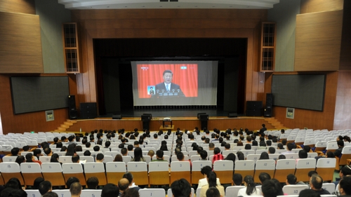 在收看大会直播中,师生党员聚精会神,认真聆听。大家一致认为,习近平总书记的重要讲话,高屋建瓴、视野宏大、思想深刻、内容丰富、论述精辟,是一篇光辉的马克思主义纲领性文献,对推进马克思主义中国化、时代化、大众化,坚定中国特色社会主义崇高信念和共产主义伟大理想具有重大意义。大家表示,要继续高扬马克思主义伟大旗帜,不断深化对马克思主义的认识,努力做坚定的马克思主义学习者、研究者和传播者,为实现“两个一百年”奋斗目标、实现中华民族伟大复兴的中国梦作出新的更大贡献。
