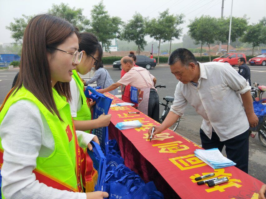 在本次活动开始前,同学们为了更好的开展宣传活动,学习了“六城同创”指创建全国文明城市、国家级卫生城市复审、国家园林城市复审、国家食品安全示范城市、全国水生态文明城市和国家森林城市。活动过程中,学生们分工合作——有的员工向大集摊位发放市场整治标准宣传材料,帮助摊主树立正确的、合法的经营理念;一些同学负责给路过的行人发放无纺布袋、信件及小礼品,引导行人要强化文明意识,争做六城同创的倡导者、引领者和监督者,同时请行人们在签名条幅上签下自己的名字,以此来坚定文明信念。随后,员工们合影留念,本次活动在一片欢笑中圆满结束。