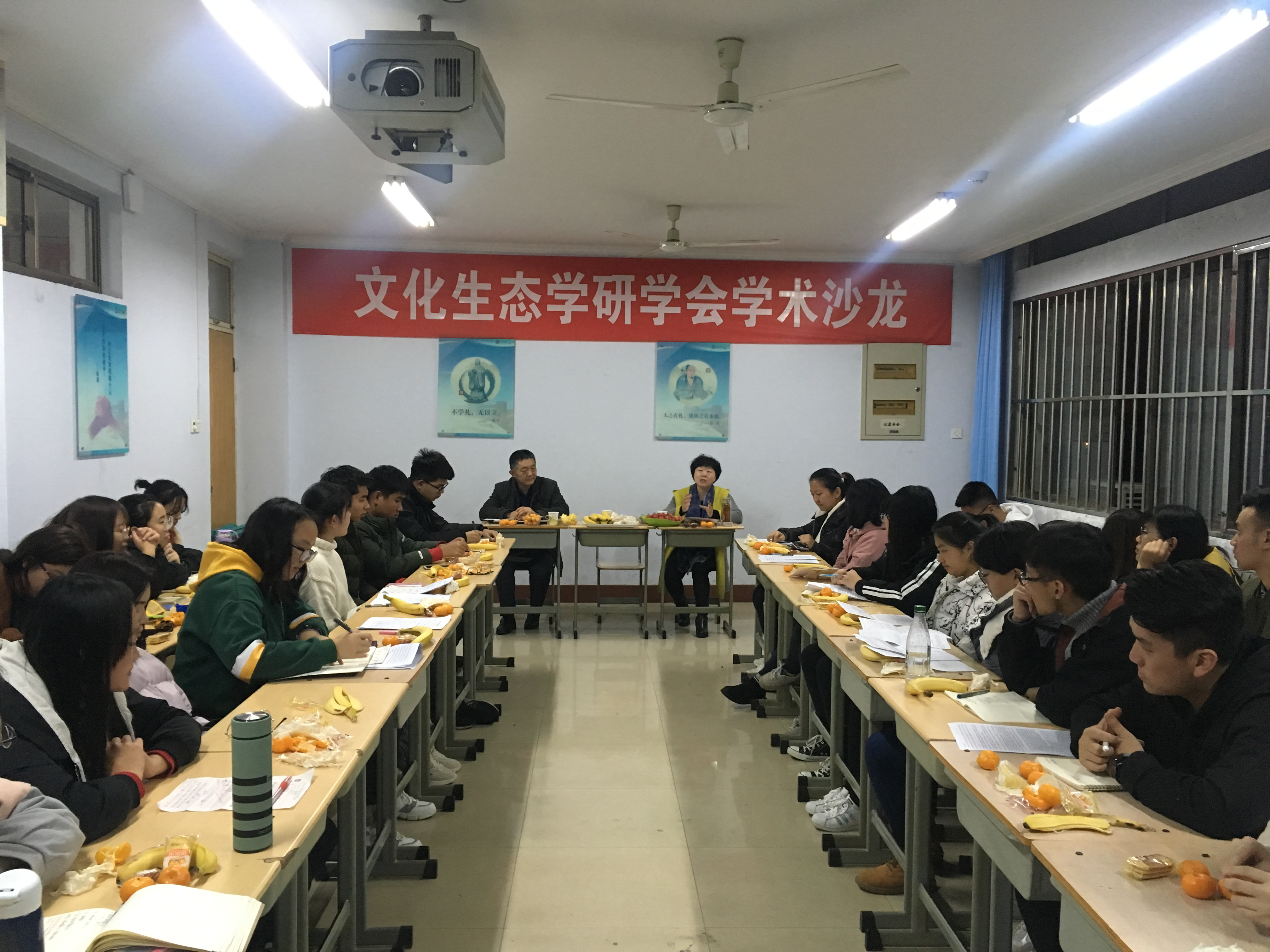 275滨州学院文化生态学研学会(以下简称研学会)于2018年11月29日在信息楼东楼514成功举办了以“语言或文字中的生态文化现象分析”为主题的第33场学术沙龙活动。本次沙龙由成妍老师主讲,王志芳老师主持,王立东老师点评,研学会近40名同学参加了沙龙活动。
