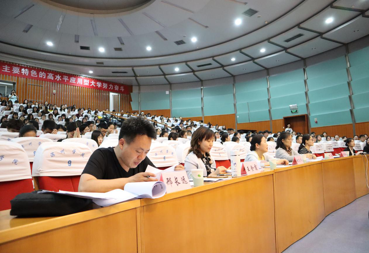 173为进一步增强师范生实践应用能力和创新能力,强化员工教学技能,彰显学院师范特色,5月27日晚,304am永利集团在集团第二报告厅举办“说听品评展教艺,三尺讲台现风采”说课大赛决赛。公司党总支副书记韩安庄、班主任、辅导员出席活动,专业教师魏文阁、李静、王金霞、白花丽、邢长远老师到场并担任大赛评委,2017、2018级员工观摩比赛。