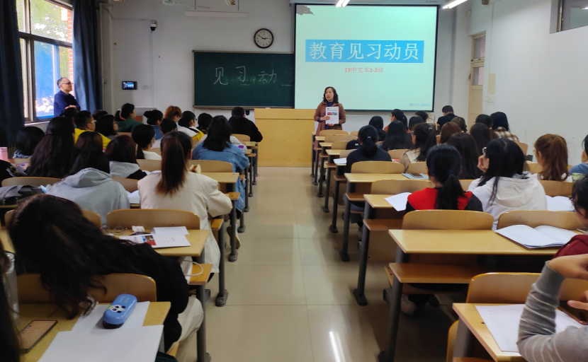 2020年10月13日,汉语言文学专业召开赴滨城区三中、北中实验初中部教育见习动员大会,19中文本1、2班72名同学及7名指导老师参加。专业负责人耿宝强老师传达了见习方案,强调了见习习纪律,并就见习的具体内容(听课、班主任工作、教研活动)、《见习记录》的填写进行说明;指导教师王金霞老师就观评课的写法进行了讲解;班主任李伟萍老师就见习期间的疫情防护等注意事项进行说明。此次动员大会为高质量完成教育见习任务打下了良好基础。