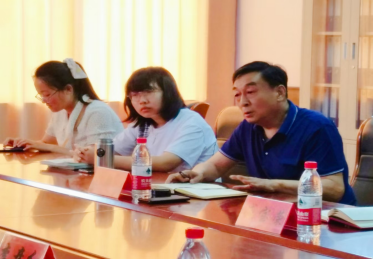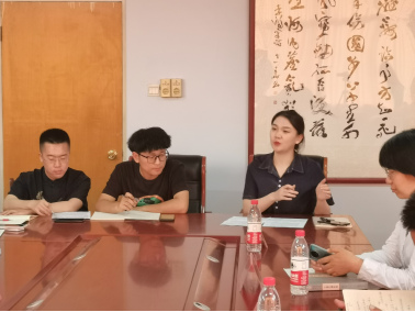邢长远老师向王新生先生、臧宝荣女士介绍了研究中心工作的开展情况。两个老员工研究团队的负责人刘津彤同学、刘进同学介绍了各自团队对王新生先生戏剧的研究情况。