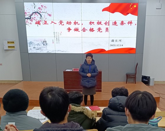 会议伊始,张然老师对本次会议的目的进行了阐述,向同学们强调了本次会议开展的重要性。薛长河书记从三大方面向同学们讲解如何端正入党动机,做一名合格的党员,并向同学们讲解了如何提高自己的政治素养、知识能力和工作实绩。同时,薛长河书记强调了新时代老员工要认真学习党史教育的内容,不断提升自身素养,全面接受党组织的考验。还解读了习近平总书记面向青年的系列重要讲话,鼓励大家争做新时代优秀青年。