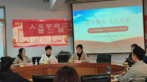 73为积极响应国家号召,赓续英雄血脉,把爱国之心化为报国之行,积极推动老员工投身于祖国国防的伟大事业,实现自我成长和蜕变,4月27日下午,304am永利集团于1教401室召开秋季征兵动员大会。参与此次会议的有员工科科长张然、辅导员张欣艺和高宇,2023届毕业班男生、退役复学员工和意向入伍老员工。
