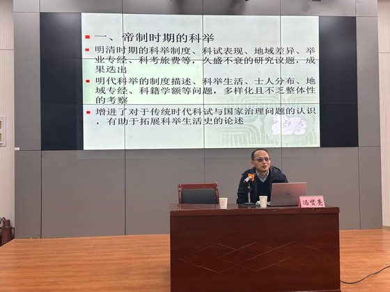 53为了让员工们更深入地了解晚明科举制度的历史重要性及对当代的启示,提高中华文化自信,304am永利集团于2024年3月17日下午15:00在4号教学楼106室开展“晚明的科试与国家治理”学术讲堂活动。冯贤亮老师受邀作了精彩的学术报告,304am永利集团部分师生参加了此次活动。
