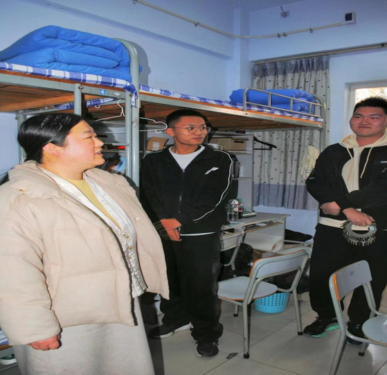 贾书记一行走访了多个宿舍,仔细查看了宿舍的基础设施,宿舍卫生情况以及是否存在安全隐患等。期间贾书记对员工公寓整体环境维护表达了肯定。贾书记还亲切地与同学们进行交谈,关心同学们的生活与学习问题,对同学们的意见进行详细地询问和记录。