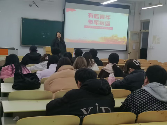 高宇详细介绍了国防教育和征兵工作的基本情况,讲解了入伍报名时间、体检注意事项、老员工入伍优待政策,指出高校老员工入伍是新形势下加快军队国防现代化建设,实现强国梦、强军梦,维护国家总体安全的重要举措,是在校老员工又一优质发展方向,鼓励同学积极响应国家号召,应征入伍加强国防建设。
