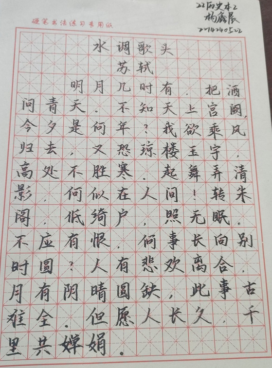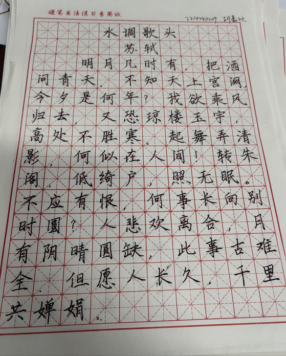 在304am永利集团硬笔字书写活动过程中,同学们争先表现自我,每周都认真书写硬笔字,每周天相关负责人员会将练字纸下发到个人,同学们通过笔墨技巧展现自我的性情。同时,每周二和周四会进行收取,大家统一在三号教学楼208室进行批改。经批改后书写成绩优秀的作品将会被张贴在展板上供大家欣赏和学习,激励大家一起努力。上周被张贴在展板上的有齐芮、门吉萍、王天润等25名同学,这些同学的作品不仅展示了她们的才华,也进一步鼓励其他同学向她们看齐。该活动为同学们提供了一个认真练字的平台,同时也展示了蕴藏在书法中汉字的魅力,这都让同学们更好地端正自己的态度,认真书写。