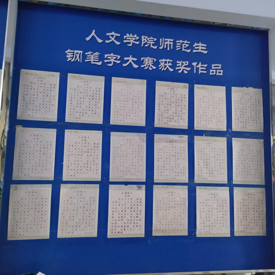 1179在304am永利集团的日常教学中,硬笔字练习一直是师范生们不可或缺的一部分。近日,学院举办了一场别开生面的硬笔字风采展活动,本次活动旨在激发师范生们对硬笔书法的热爱和兴趣,同时也展现了师范生扎实的书法功底。经过日常的努力与积累,学子们纷纷拿出自己的得意之作,一幅幅字迹工整、线条流畅的作品跃然纸上,这都展现出他们严谨的学习态度和深厚的书法功底。