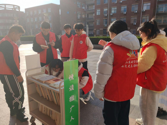 活动开始前,首先由志愿者们提前向图书馆借阅书籍并分类整理摆放在移动书架上,做好准备工作。活动过程中,志愿者们向同学们介绍书籍类别及书中故事情节与知识,其中不乏雅俗共赏的文人轶事。在志愿者的引导下,同学们互相分享着读书的感悟,积极表达自己的见解,这也丰富了同学们的知识储备。