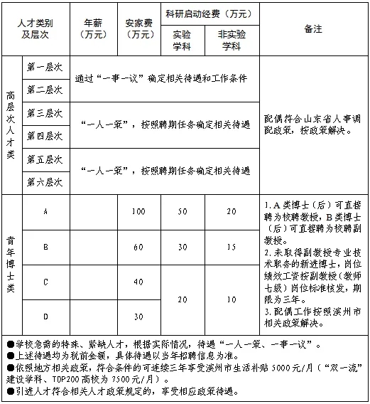 (四)引进人才可根据滨州市政策拎包免费租住人才公寓,也可入住学校周转房。